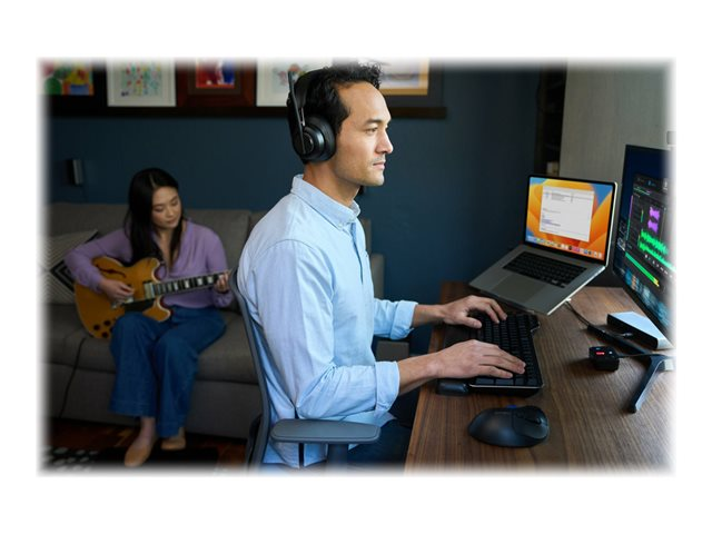 Les professionnels travaillant au bureau, à domicile ou en déplacement ont fréquemment besoin de passer d'une source audio à une autre depuis leur ordinateur portable, leur téléphone ou d'autres appareils. Qu'il s'agisse de répondre à un appel vidéo, de passer un appel téléphonique ou d'écouter de la musique, le basculement entre différents appareils peut être long et complexe. Notre switch audio 3 en 1 permet aux professionnels d'utiliser un même casque filaire ou sans fil tout en basculant entre trois sources audio différentes. Les utilisateurs peuvent facilement basculer entre leur ordinateur portable, leur téléphone ou leur tablette, ce qui leur permet d'augmenter leur productivité. Compatible avec de nombreuses plateformes, telles que Microsoft Teams, Google Meet, Zoom et WebEx, le switch audio 3 en 1 professionnel pour casques offre une expérience audio professionnelle grâce à ses boutons de commande pratiques permettant la commutation des appareils, le contrôle du volume et la désactivation du son.