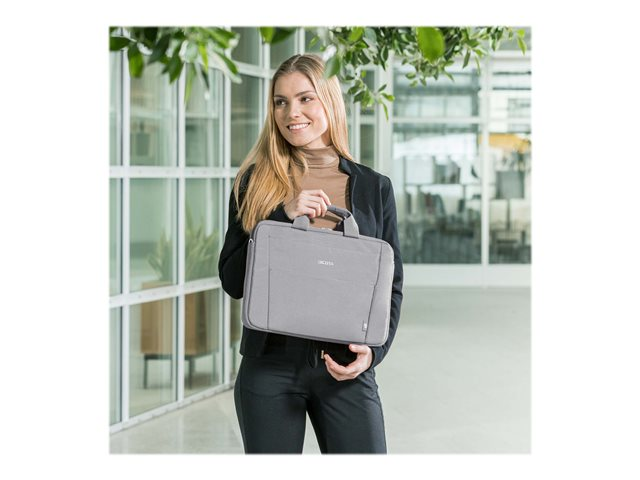 L'Eco Slim Case BASE est la solution de transport légère et mince pour votre ordinateur portable. Les appareils de 13 - 14.1" sont parfaitement protégés dans le compartiment rembourré pour ordinateur portable. Transportez votre sac confortablement grâce à la poignée rembourrée ou utilisez la bretelle réglable. Un compartiment à documents utile se trouve à l'arrière, où les documents peuvent être facilement rangés. Dans le compartiment avant pratique, vous trouverez suffisamment de place pour le smartphone ou d'autres accessoires mobiles tels que des câbles, des stylos ou des chargeurs qui doivent toujours être à portée de main. Cela fait de l'Eco Slim Case BASE le sac parfait pour tous ceux qui se déplacent souvent et qui souhaitent soutenir la réutilisation raisonnable des bouteilles en PET grâce à une solution de transport écologique.
