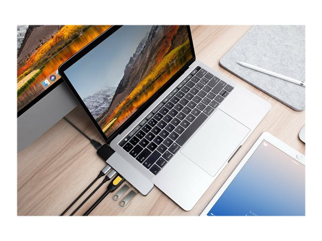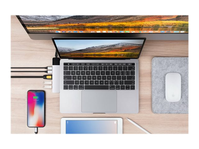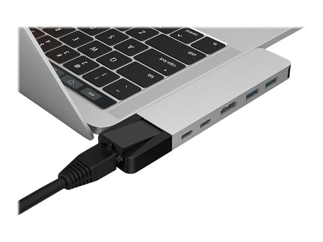 Hub USB-C de forme adaptée pour MacBook Pro et MacBook Air. Ce puissant adaptateur USB-C ajoute 6 ports : adaptateur ethernet gigabit, HDMI 4K, alimentation USB-C de 100 W, et plus encore.