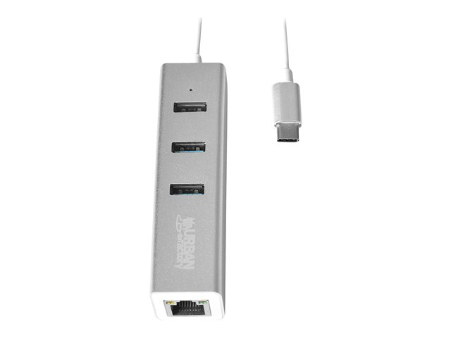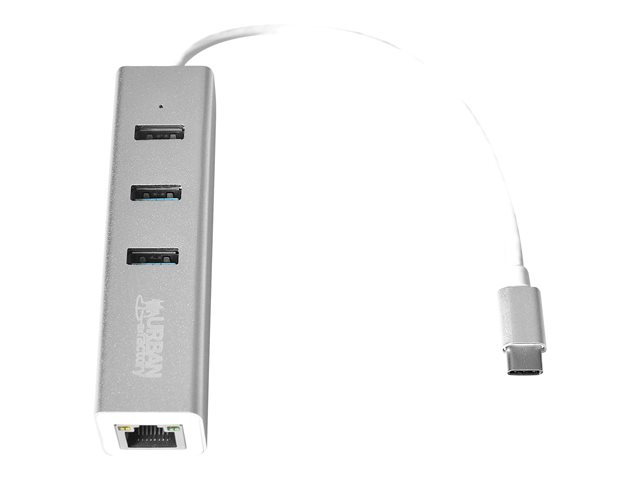 Urban Factory Compact USB-C Compact Station: Input USB-C, Output 3x USB 3.0, LAN and micro USB for power delivery - Station d'accueil - USB-C