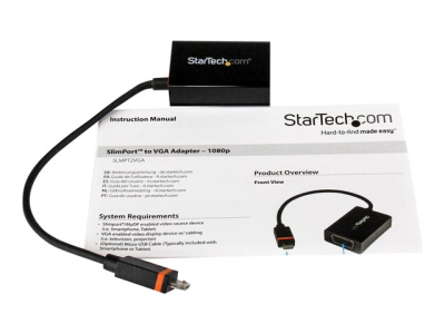 L'adaptateur Micro USB (SlimPort) vers VGA SLMPT2VGA vous permet de connecter votre ordinateur portable ou votre smartphone SlimPort/MyDP à une télévision, un écran ou un vidéoprojecteur VGA. Idéal pour étendre votre espace de travail ou afficher du contenu sur votre ordinateur portable HP Chromebook 11, sur votre smartphone LG Optimus G Pro ou G2 sur un plus grand écran, cet adaptateur offre un moyen simple d'augmenter votre productivité ou de partager votre écran lors de visionnage en groupe.
