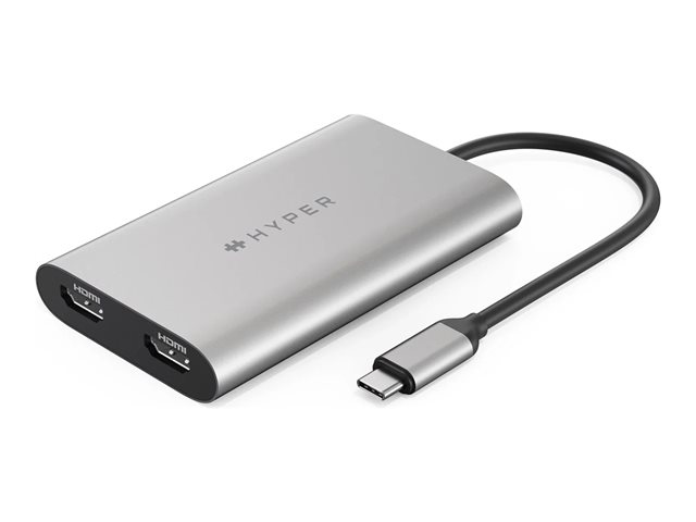 HyperDrive Dual - Adaptateur vidéo - 24 pin USB-C pour HDMI, 24 pin USB-C - Alimentation USB (100 W), 4K 30Hz (HDMI 2ème écran), 4K 60Hz (HDMI 1er écran) HDM1-GL