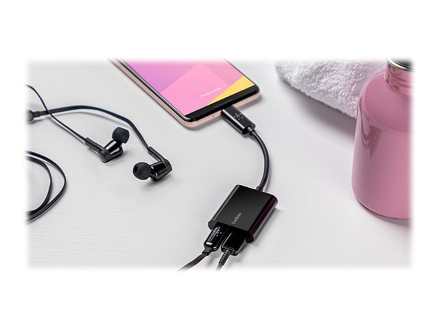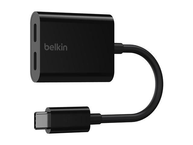 Belkin Connect Audio + Charge - Casque/adaptateur de charge USB-C vers USB-C - 24 pin USB-C mâle pour 24 pin USB-C femelle - 14 m - noir - USB Power Delivery (60W) F7U081BTBLK