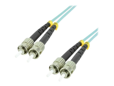 Jarretière équipée d'une fibre optique OM3 50/125 microns à laser Giga Ethernet, jusqu'à 10 Gbits/s sur une longueur max. de 300m.