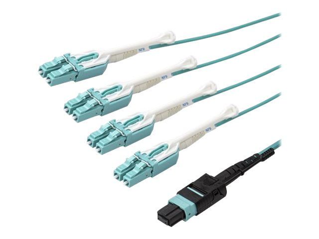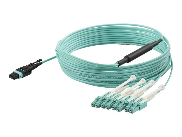 StarTech.com MTP to LC Breakout Cable - 15 ft / 5m - OM3 Multimode - 40Gb - Pull Tab - Plenum - MPO / MTP Connector - Fiber Optic Cable (MPO8LCPL5M) - Câble éclaté - MTP/MPO multimode (F) pousser/tirer pour LC multi-mode (M) pousser/tirer - 5 m - fibre optique - 50 / 125 microns - OM3 - plenum - turquoise MPO8LCPL5M