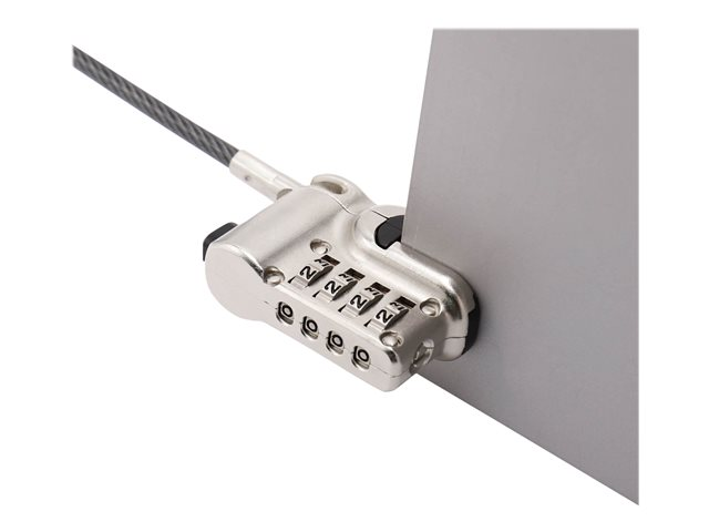 Le câble peut être rapidement fixé au pied du Microsoft Surface Pro et Surface GO et retiré, sans colle ni outils. La sécurité sans clé ni compromis : choisissez votre code personnel à 4 chiffres parmi 10 000 combinaisons possible. Grâce à la fonction "Push-to-lock", le cadenas peut également être verrouillé. Grâce à la bande Velcro pratique, le câble peut être enroulé pour gagner de la place pendant le transport et le rangement.