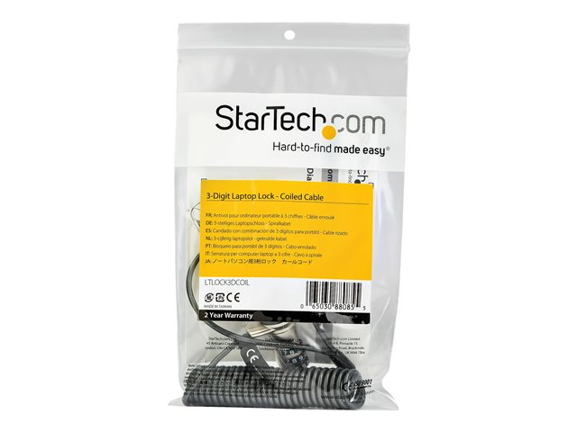 StarTech.com Câble de sécurité pour ordinateur portable à code 3 chiffres - Câble enroulé 1,8 m - Antivol (LTLOCK3DCOIL) - Câble de sécurité - 1.8 m LTLOCK3DCOIL