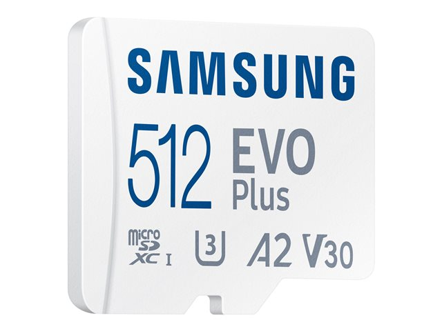 Samsung EVO Plus MB-MC512KA - Carte mémoire flash (adaptateur microSDXC vers SD inclus(e)) - 512 Go - A2 / Video Class V30 / UHS-I U3 / Class10 - microSDXC UHS-I - blanc