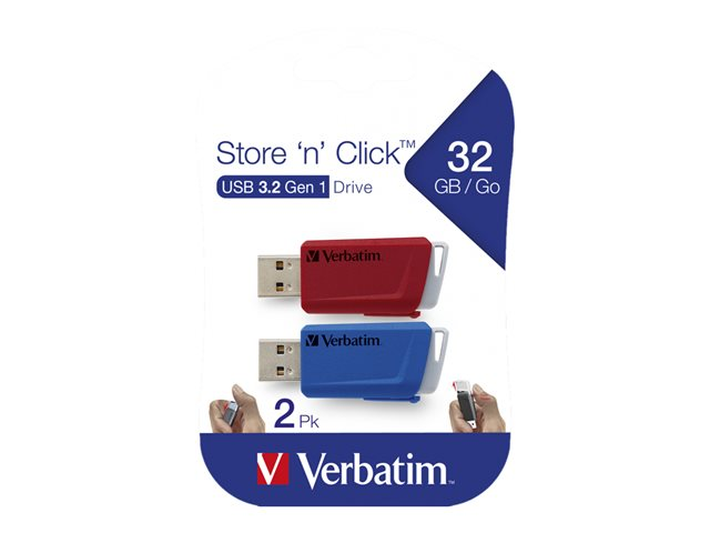 Verbatim Store 'n' Click - Clé USB - 32 Go - USB 3.2 Gen 1 - bleu, rouge (pack de 2)