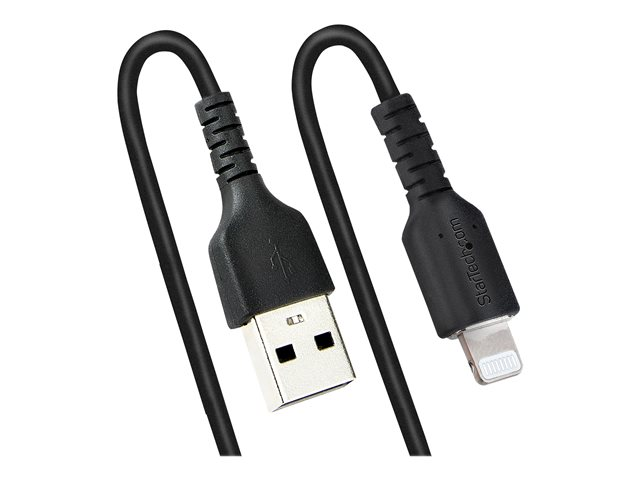 StarTech.com Câble USB vers Lightning de 50cm - Certifié Mfi - Adaptateur USB Lightning Noir, Gaine en TPE - Cordon Chargeur Iphone/Lightning Spiralé en Fibre Aramide Très Résistant (RUSB2ALT50CMBC) - Câble Lightning - USB mâle pour Lightning mâle - 50 cm - noir - bobiné