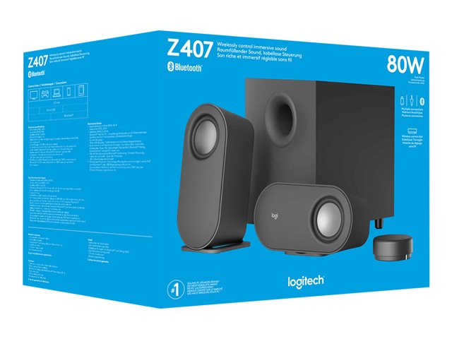 Logitech Z407 - Android Edition - système de haut-parleur - pour PC - Canal 2.1 - sans fil - Bluetooth - USB - 40 Watt (Totale) - gris graphite 980-001348