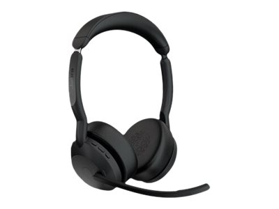 Jabra Evolve2 55 UC Stereo - Micro-casque - sur-oreille - Bluetooth - sans fil - Suppresseur de bruit actif - USB-C - noir - avec support de chargement - certifié Zoom, Cisco Webex Certified, Optimisé pour Microsoft Teams, Certifié Alcatel-Lucent, Certifié Avaya, Certifié Unify, Certifié MFi, Certifié Amazon Chime 25599-989-889