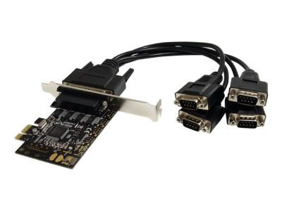 La carte série 4 ports PCI Express PEX4S553B (avec câble de commande) permet d'ajouter 4 ports de série RS232 grâce à une seule fente d'extension PCI-E et un câble inclus 1 à 4 qui permet d'ajouter 4 ports de série à une fente unique à faible encombrement.