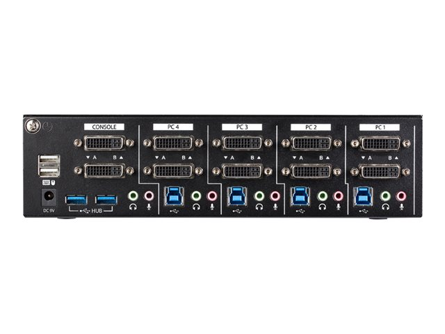 Le commutateur KVM prend en charge quatre systèmes informatiques multimédia séparés et l'utilisation d'un poste de travail à double moniteur DVI Dual Link, augmentant ainsi la productivité en vous permettant d'accéder à plus d'informations en même temps.